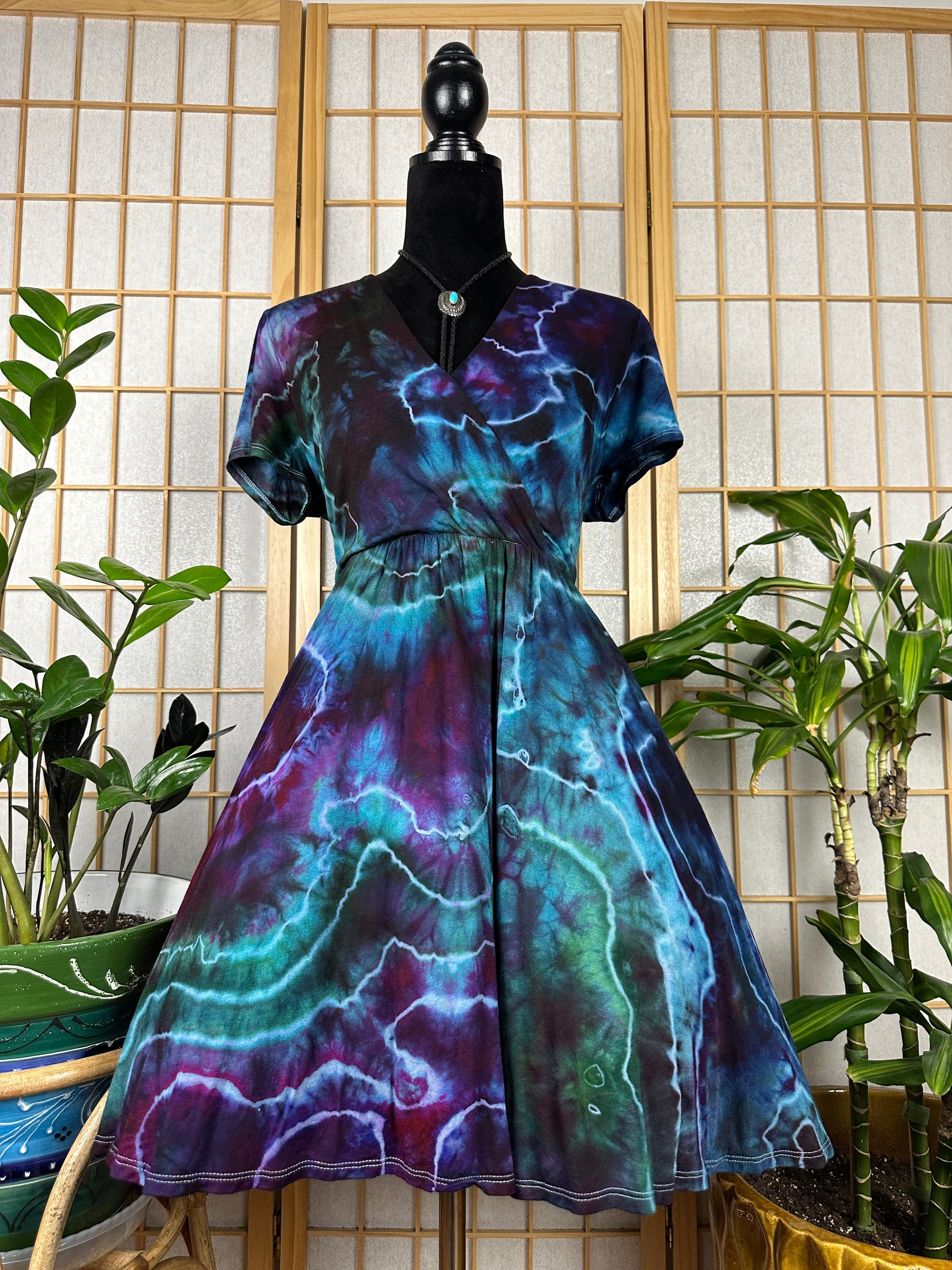 The piper dress is perfect for every occasion. It's made of a stretchy rayon fabric and it runs true to size with a lot of stretch in the waistband. The skirt lands around/just above the knee.