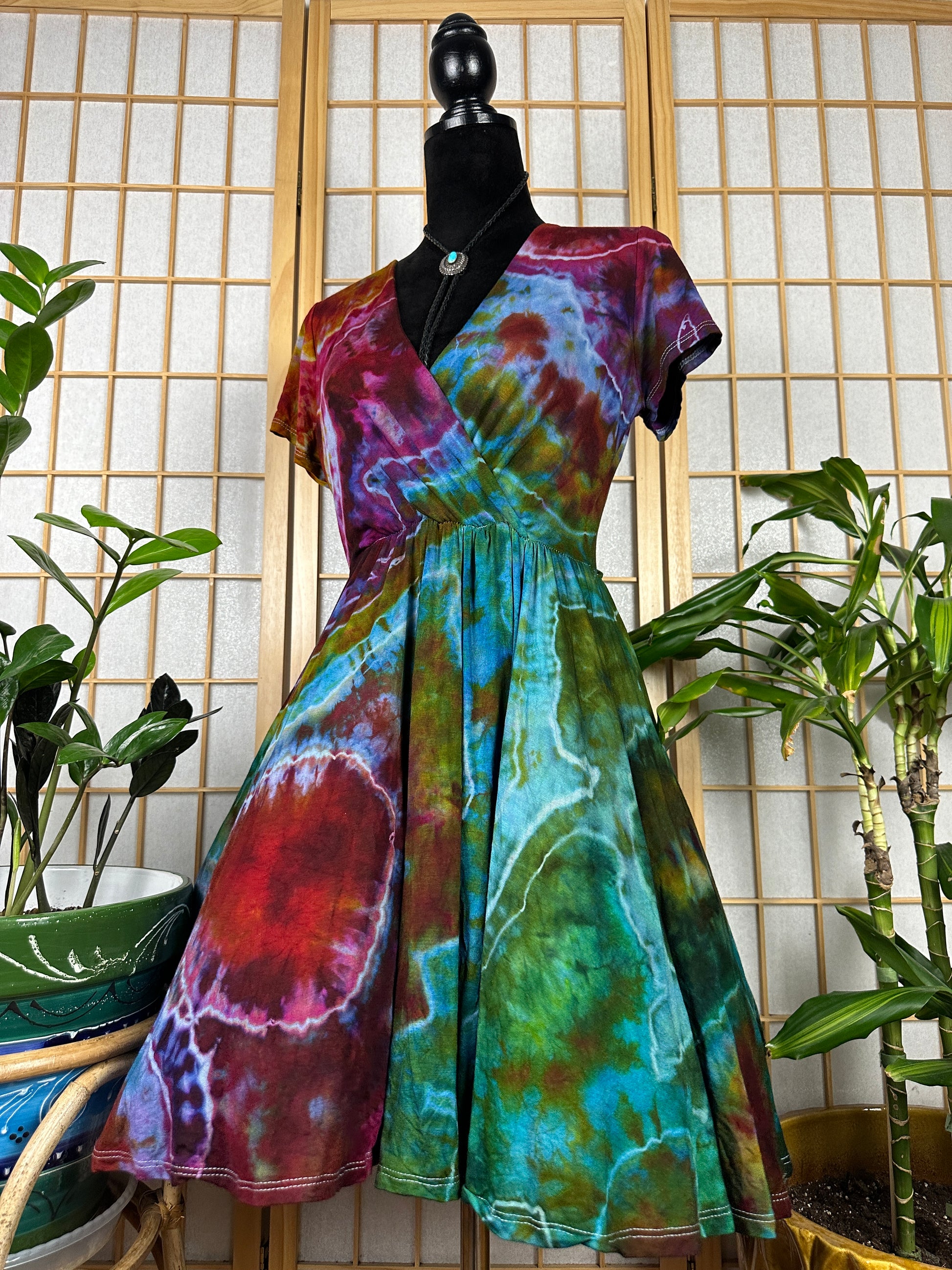 The piper dress is perfect for every occasion. It's made of a stretchy rayon fabric and it runs true to size with a lot of stretch in the waistband. The skirt lands around/just above the knee.