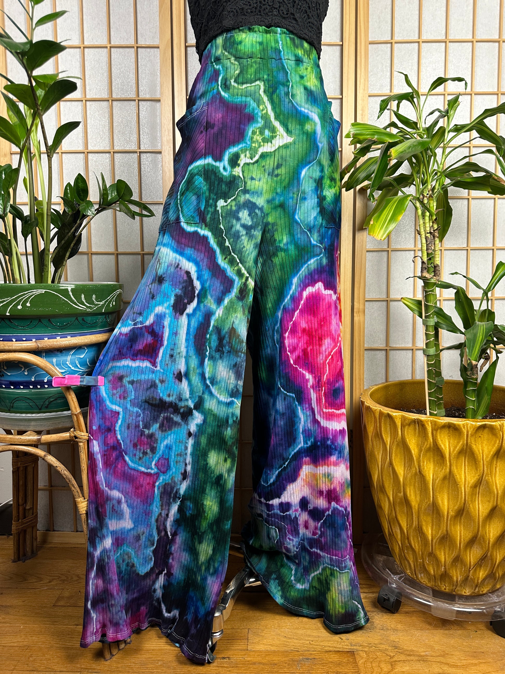 These pants are made of a thick, stretchy 55% cotton/45% rayon fabric AND they have pockets! This style features a thick internal elastic waistband and they run true to size.