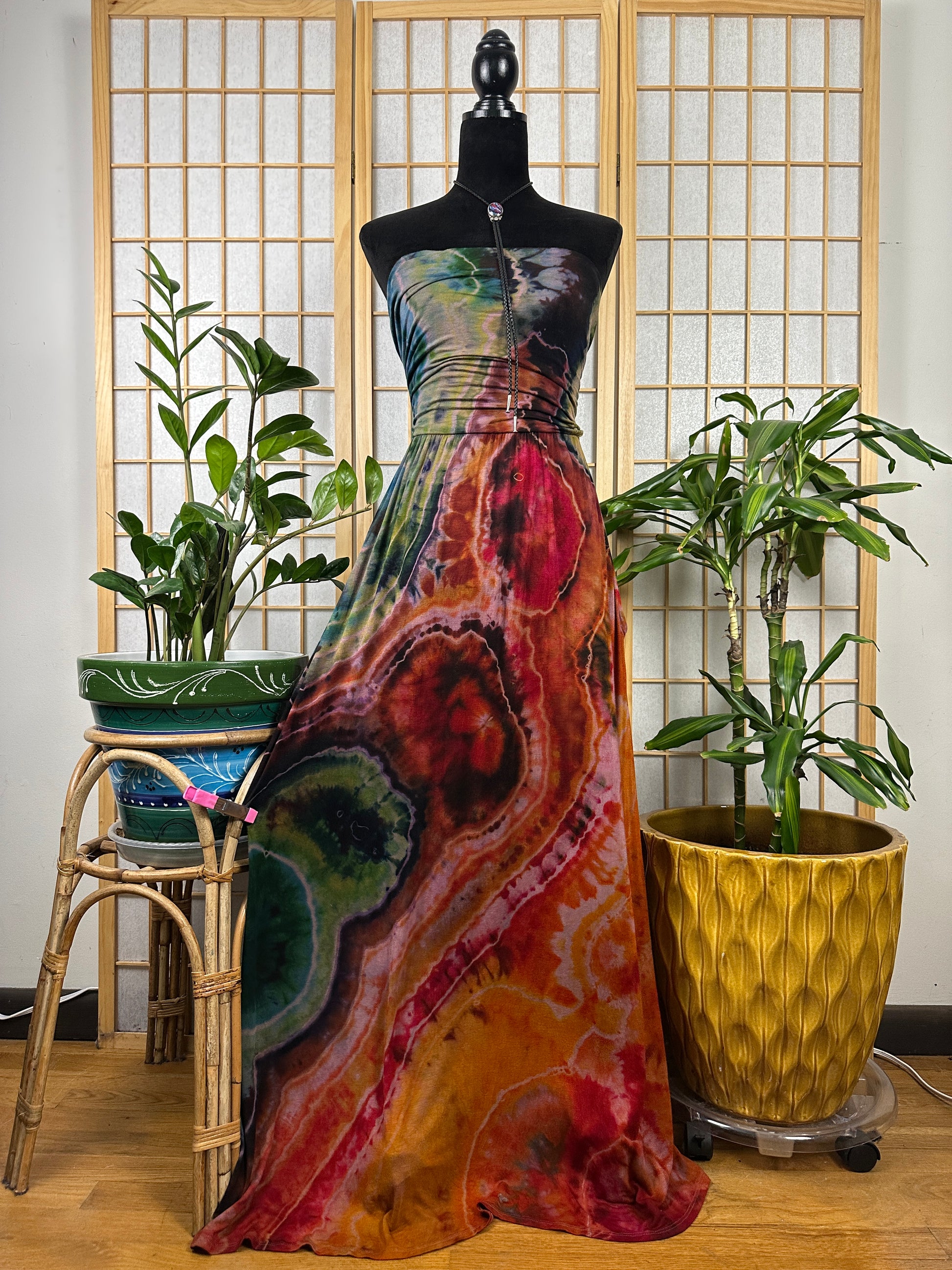 This maxi dress has a ruched bust detail and POCKETS! This dress is maxi length and a on the smaller side