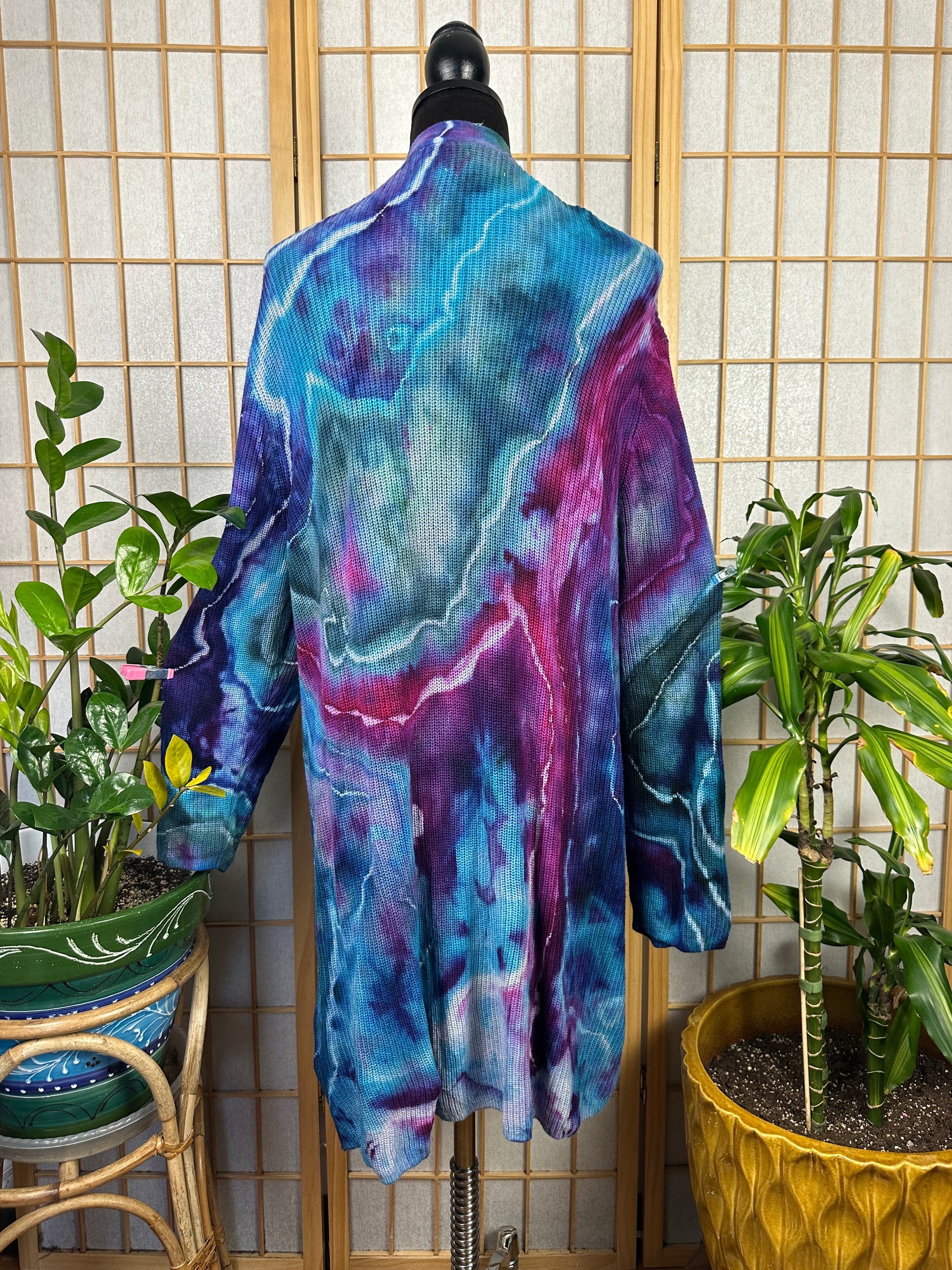 This knit sweater is made of a cotton/rayon blend yarn and is thicker and warmer than any of our other cardigans! This style has a very relaxed fit, lands below the booty and it has deep front pockets!