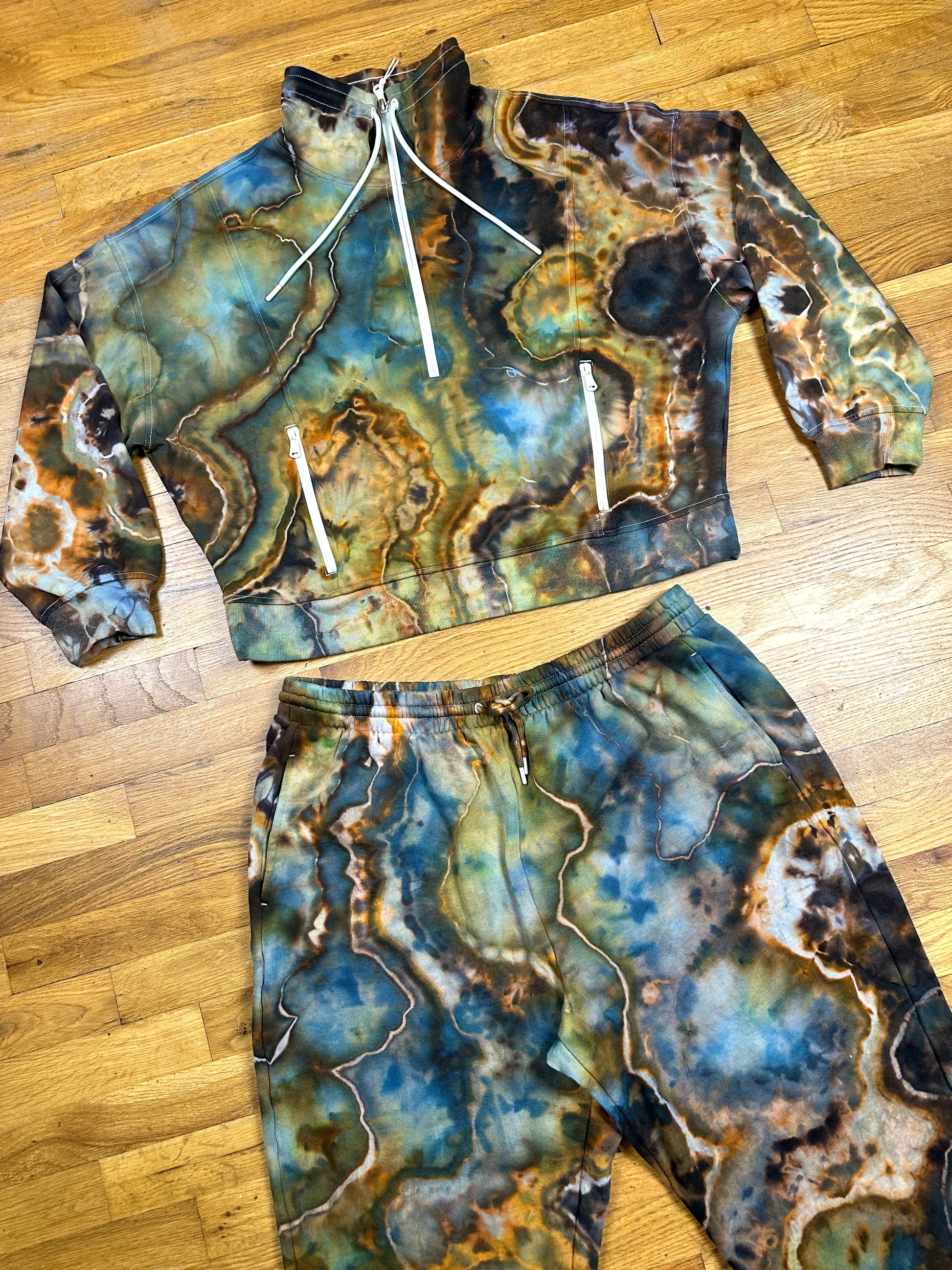 The hoodie has a relaxed, slightly cropped fit with pockets, a half zip and a huge hood. This one is made of a cotton/rayon/poly blend (feels a little more like athletic wear than a traditional cotton hoodie)